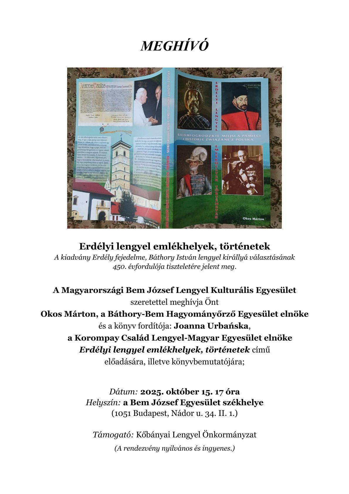 Helyszín: a Bem József Egyesület székhelye